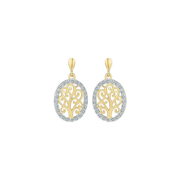 Fine øreringe i 8 kt. ægte guld med Livets Træ omkranset af hvide sten.