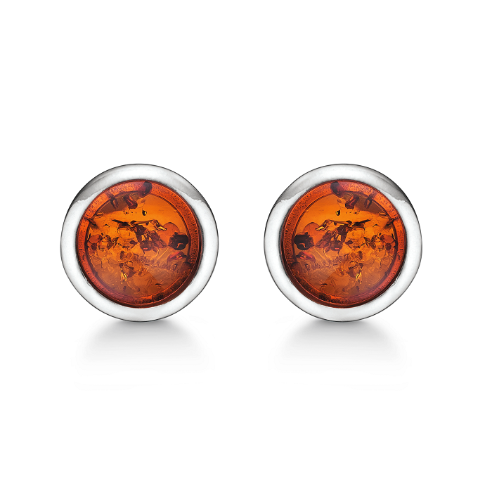Klassiske øreringe i sølv med ægte rav