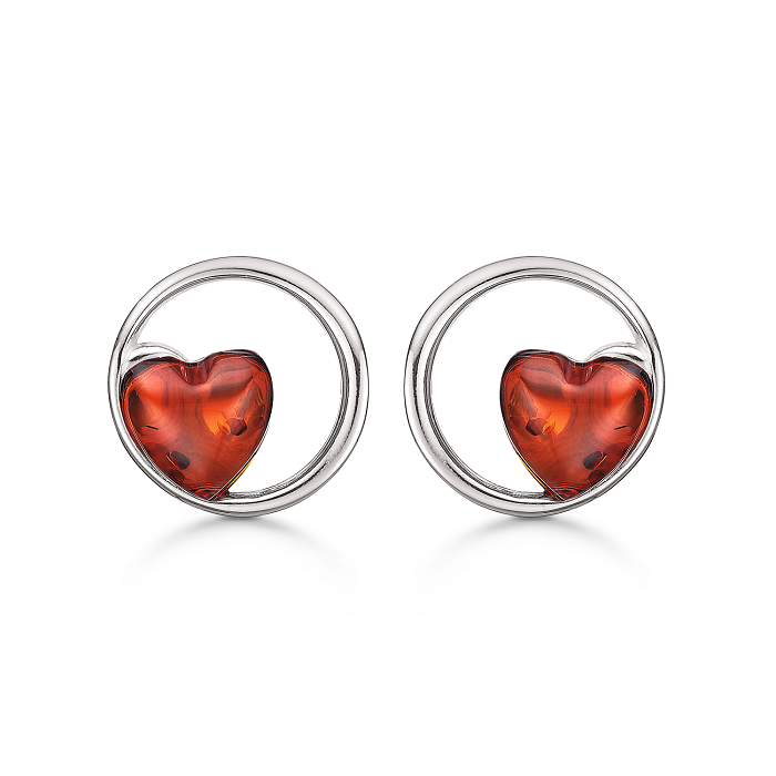 Klassiske øreringe i sølv med ægte rav formet som hjerte