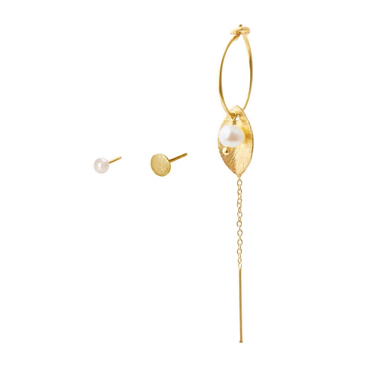 Smukke øreringe i forgyldt sterling sølv 925, sæt med 3 enkelte øreringe