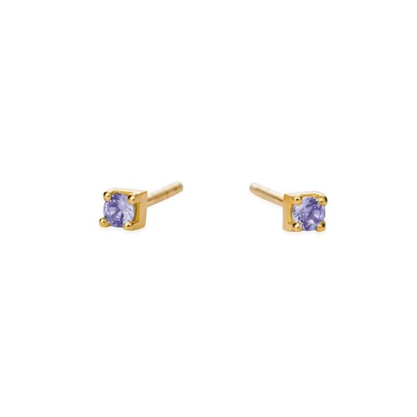 Ørestik, forgyldt sølv, 3 mm firkantet lilla zirkon