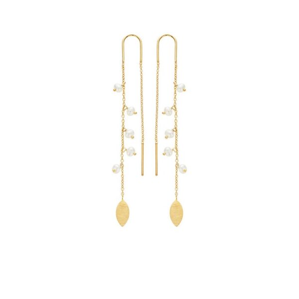 Ørekæde m fast bøjle, forgyldt sølv, ferskvandsperler