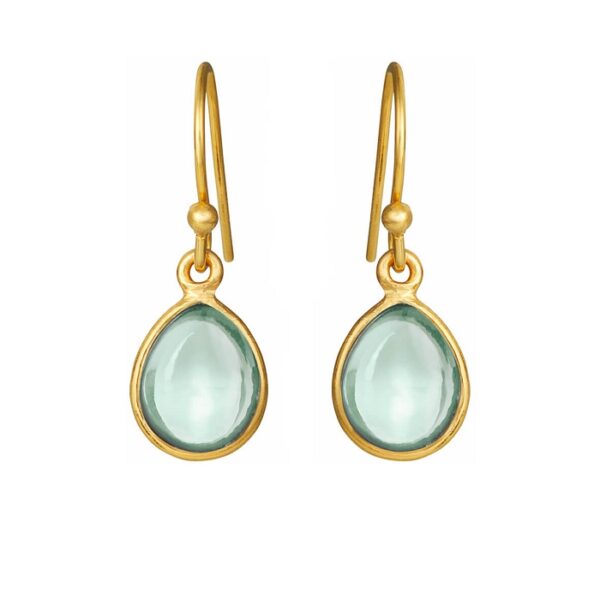 Ørering (bøjle), forgyldt sølv, 8x10 mm dråbe cabochon grøn kvarts
