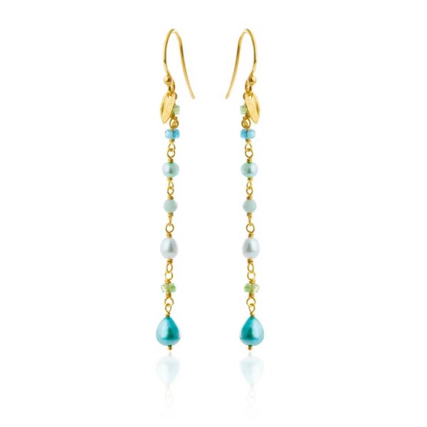 Flotte øreringe i forgyldt med ægte perler og sten