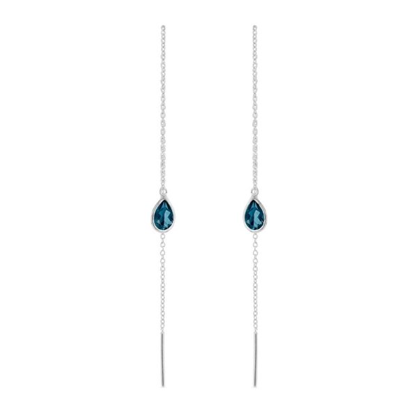 Ørekæde, sølv, mini dråbe facet London blå krystal