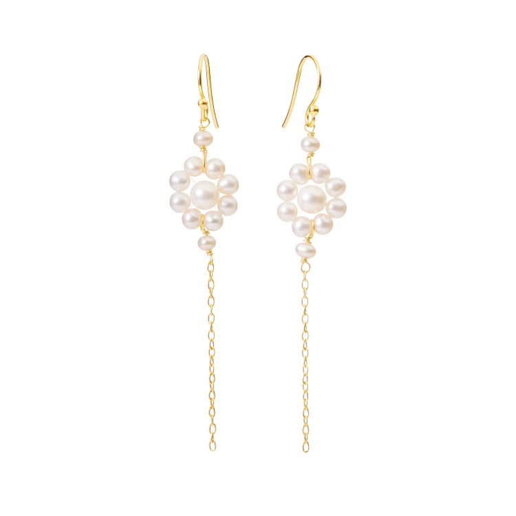 Smukke øreringe i forgyldt sterling sølv 925 med ferskvandsperler.
